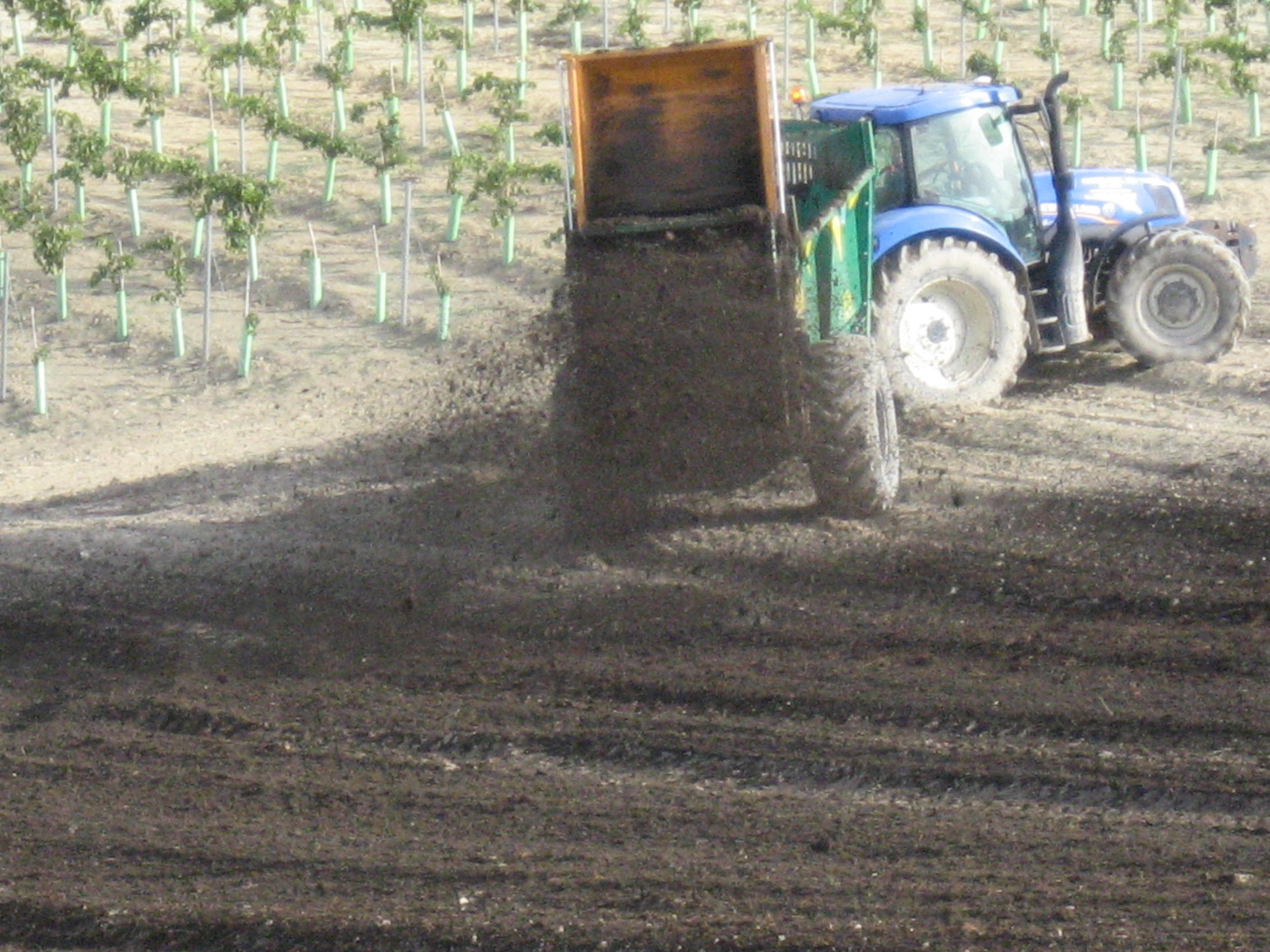 En la República de Cuartillo, en la viña La Blanca , de las bodegas Hnos. Sánchez Romate,,se abona con estiercol de vaca. Una máquina distribuye por todo el terreno el estiercol antes de sembrar nueva cepas. Unos años arrancan las cepas viejas y otros las plantas de nuevo. El vino y el brandy de esta bodega son naturales y están buenos, buenos.