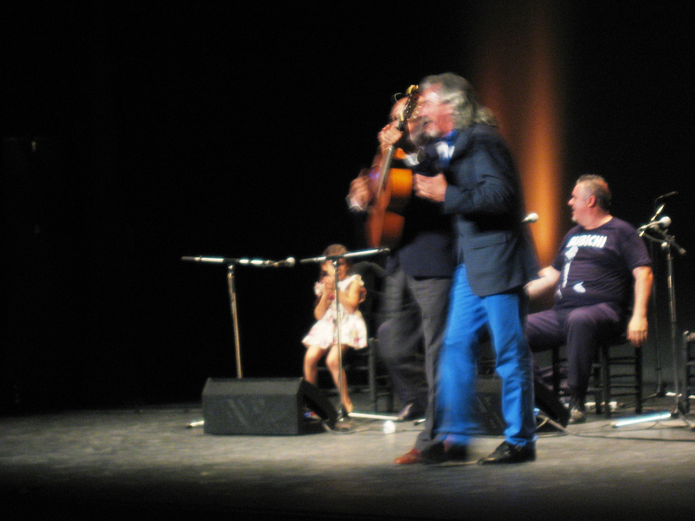 homenaje a Rubichi en el teatro villamarta. Diego de los Santos, gitano cabal, discreto, familiar, con una voz afillá, encallecida como buen cantaor que se entrega en cada uno de sus cantes.