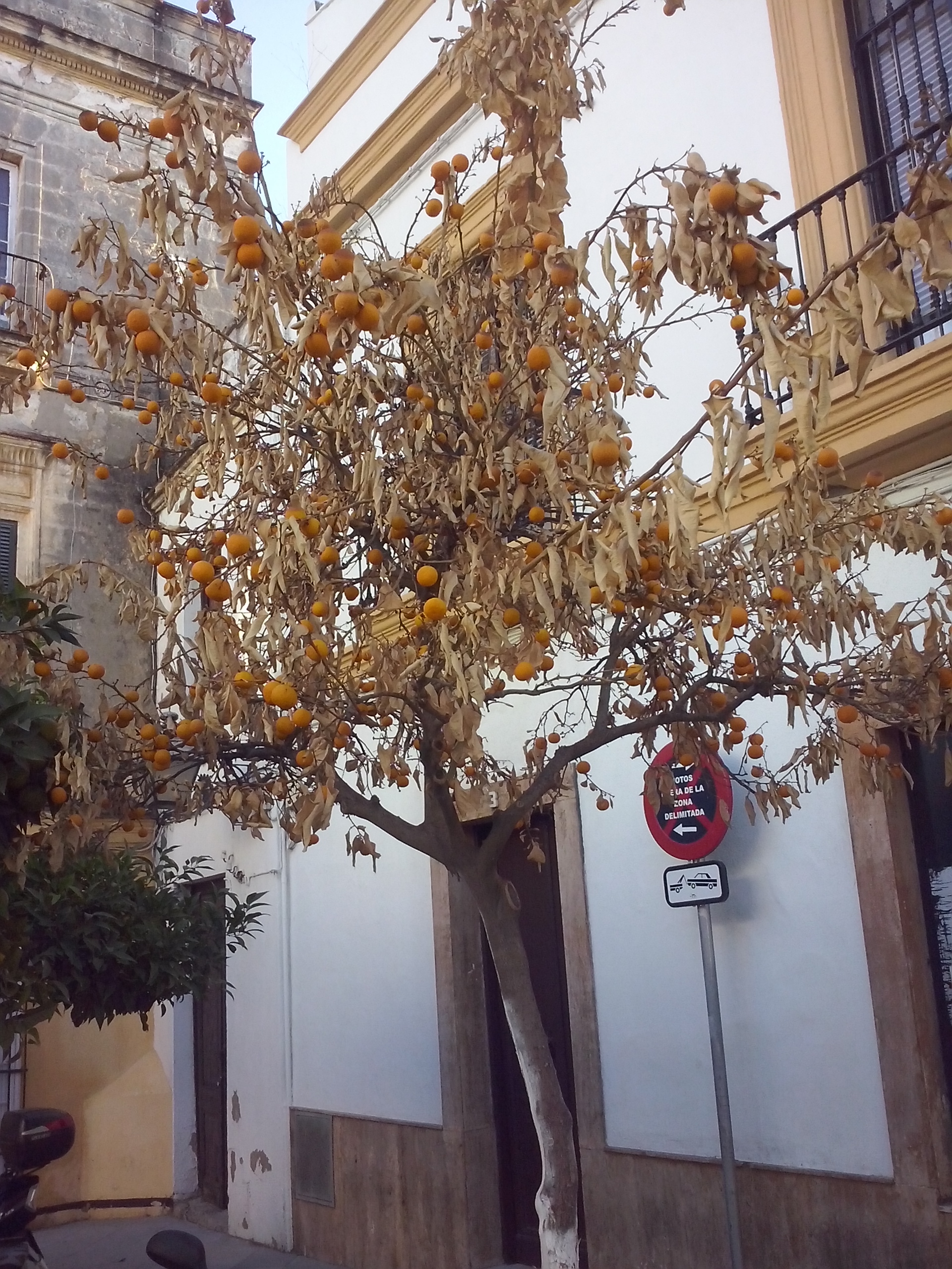 No es la primera vez que vemos naranjos con la corteza cortada circularmente, y así provocar su muerte en ese entorno de la Cruz Vieja en el barrio de San Miguel. Este naranjo tenía la corteza cortada, y nos dejó su fruto inmaduro, amarillo por sequedad, ejemplo de muerte prematura. Descanse en paz en la tierra acogedora y comience su nuevo ciclo natural.