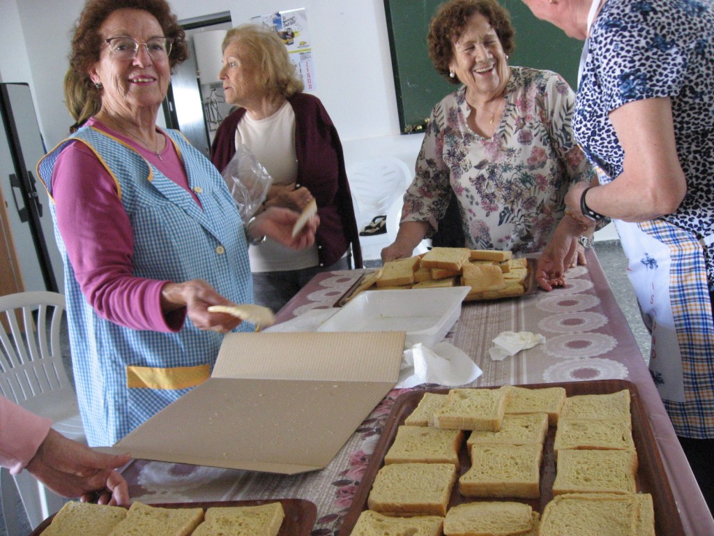 Como todos los años, alrededor de la Semana Santa, unas veces antes y otras veces después, el grupo de mayores descansa en la creación de artesanías y se dedica a elaborar riquísimas torrijas. Pan de un día para otro, leche, canela en rama, azúcar, aceite de oliva con una casca de limón (para perfumarlo) y miel. Acompaña café de cafetera tradicional y a alabar a las cocineras.